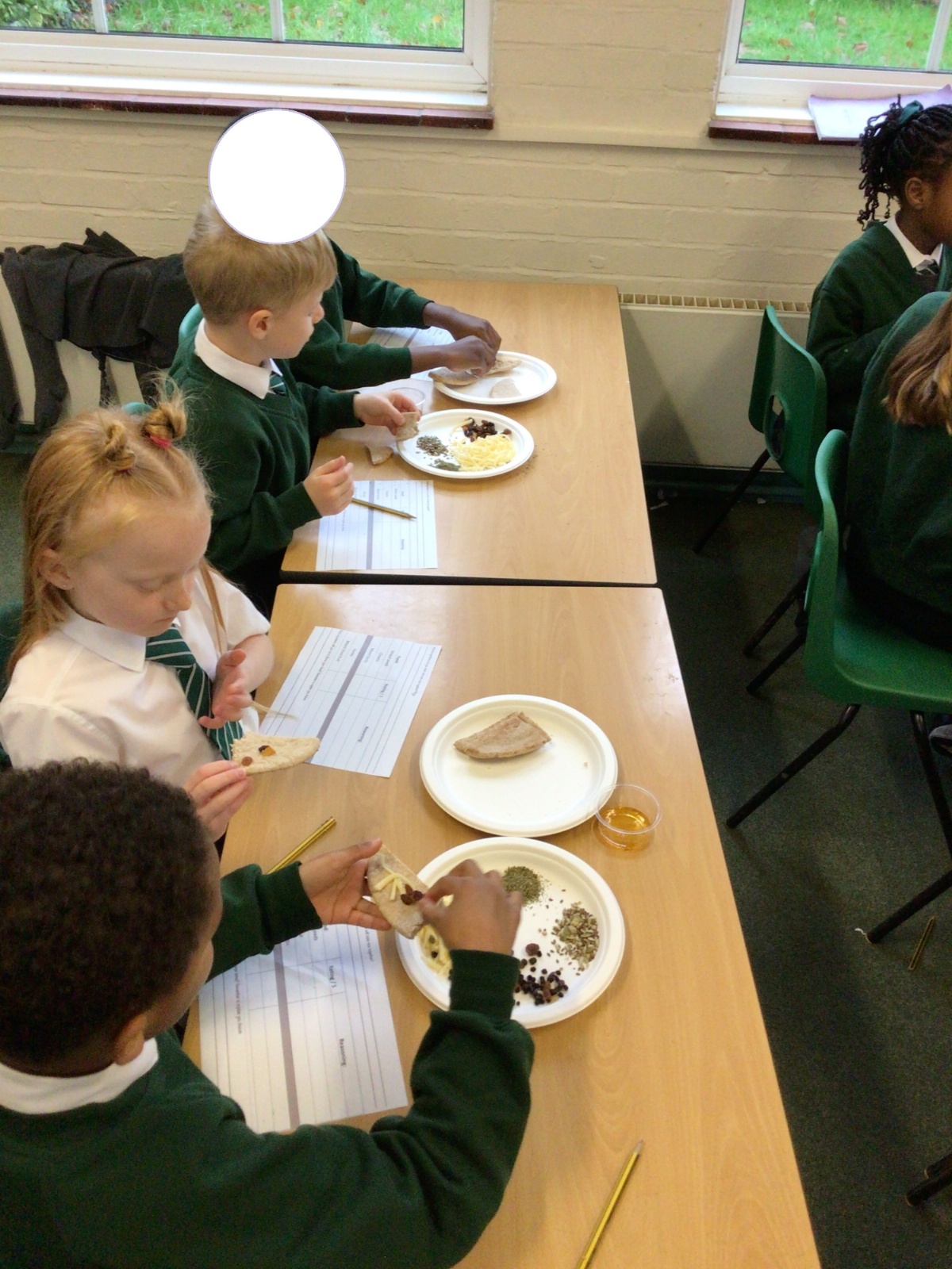 Later this half-term, we will be making our own Bronze Age-inspired flat bread! Today we tasted a variety of different toppings that we have the option of adding when we start making. We enjoyed tasting and rating each one.
