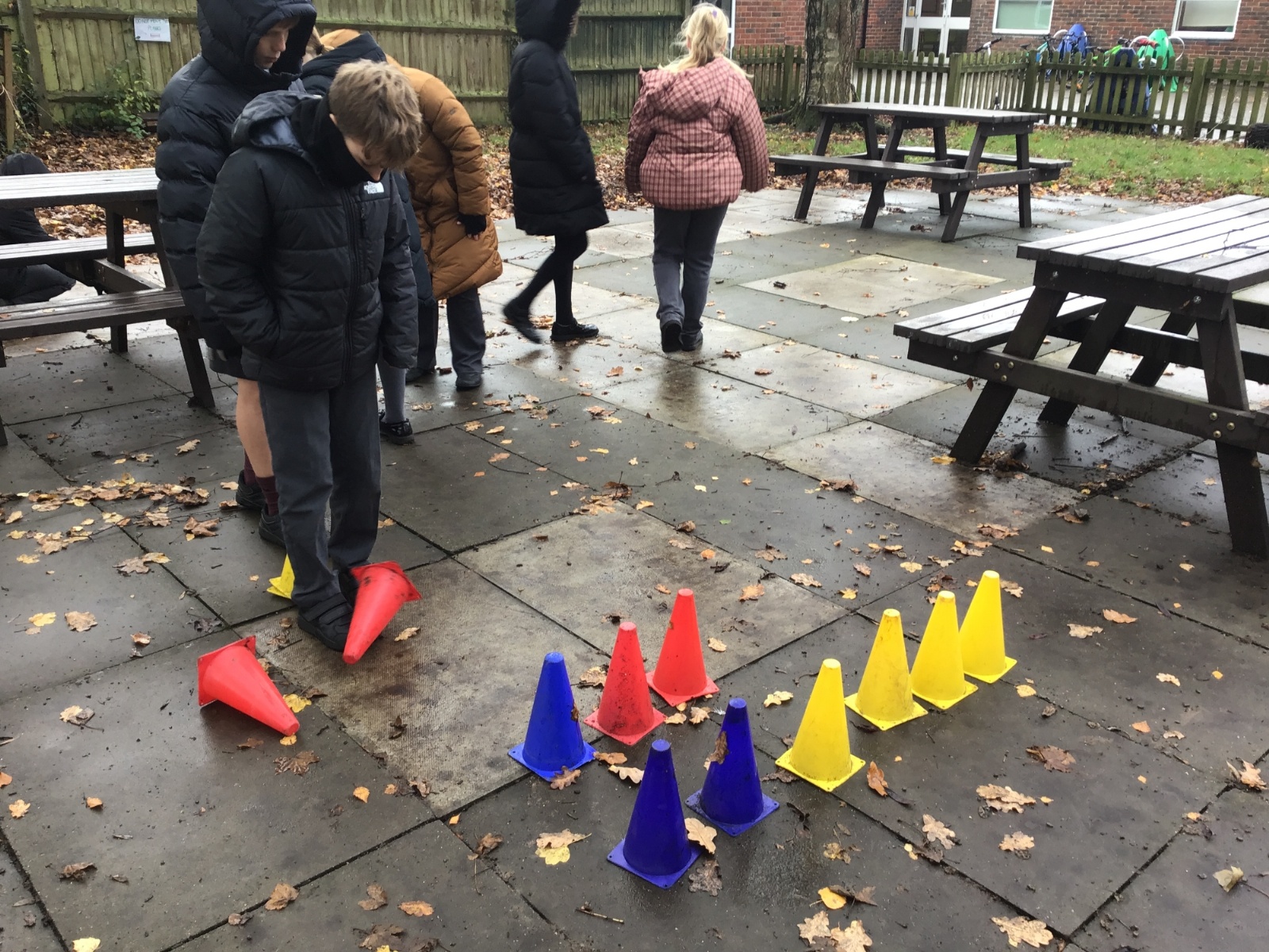 Russell Class braved the rainy weather to show fractions using things from our school grounds.