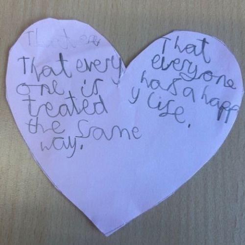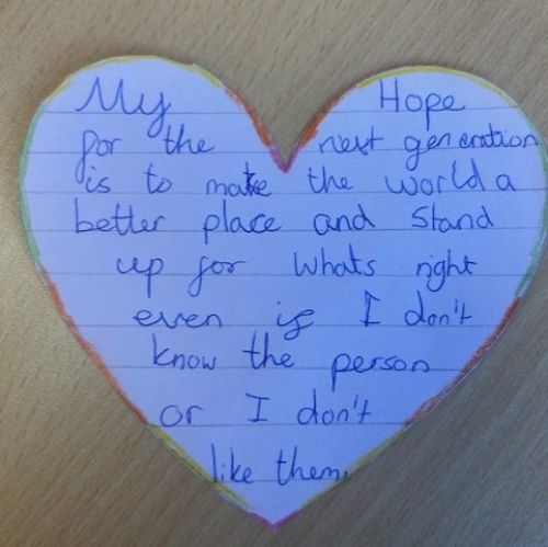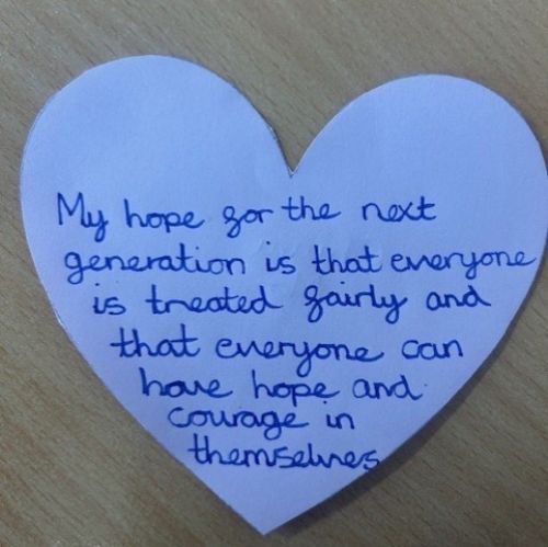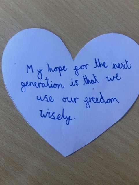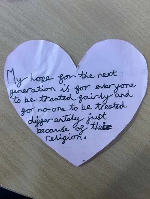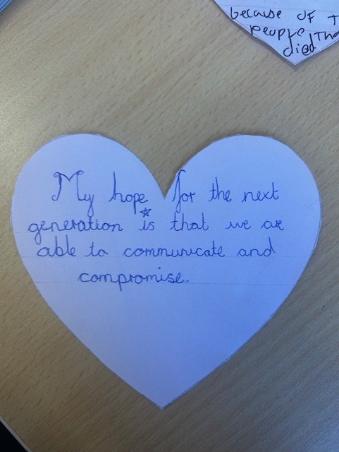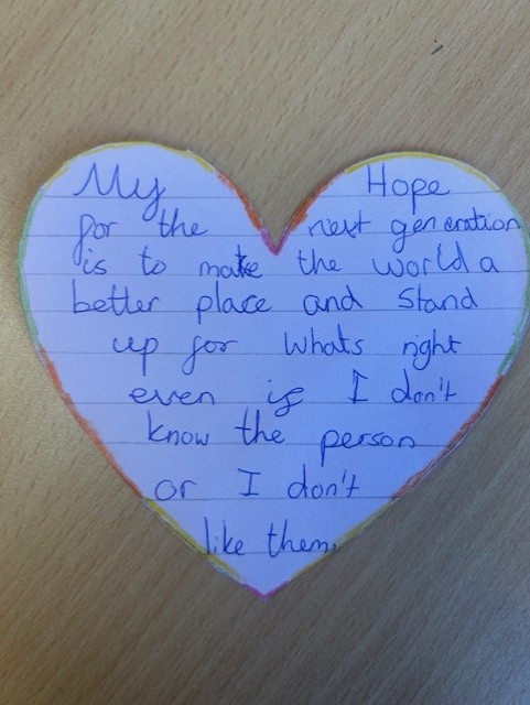 All classes shared an age appropriate picture book this week and had an opportunity to discuss the themes with their teachers. We all then thought about our hopes for the next generation and used these to create a whole school Holocaust Memorial Day Display.