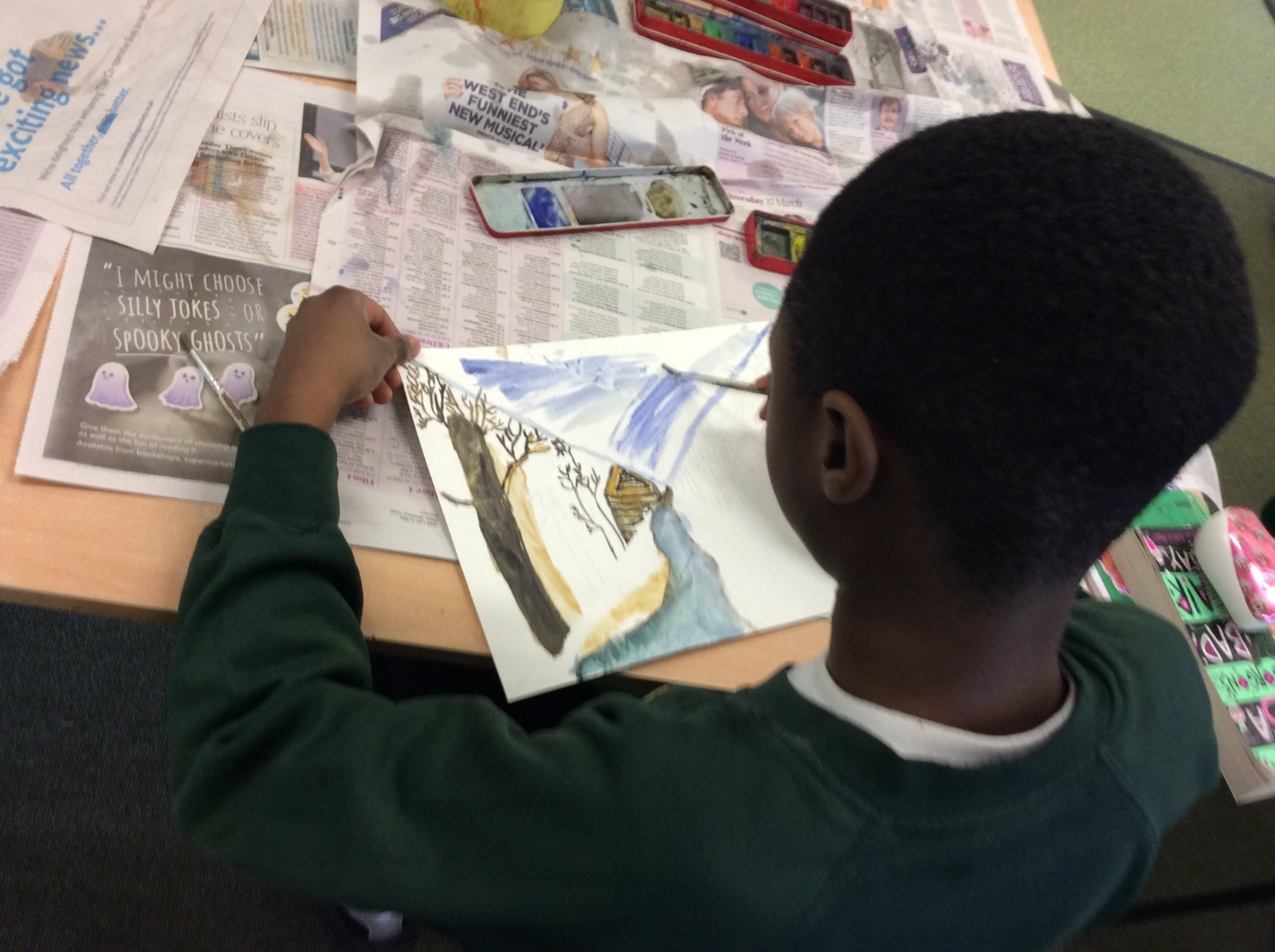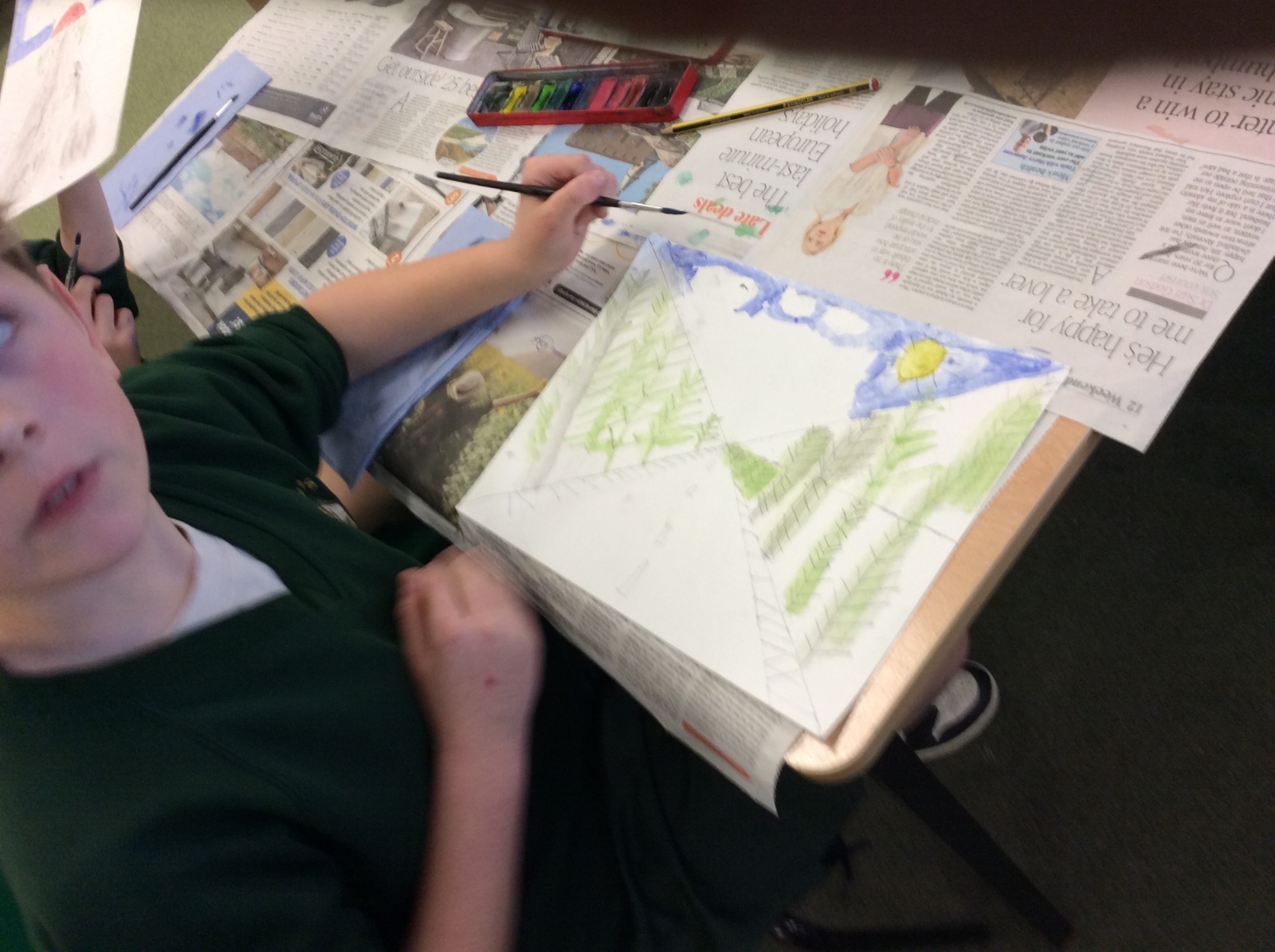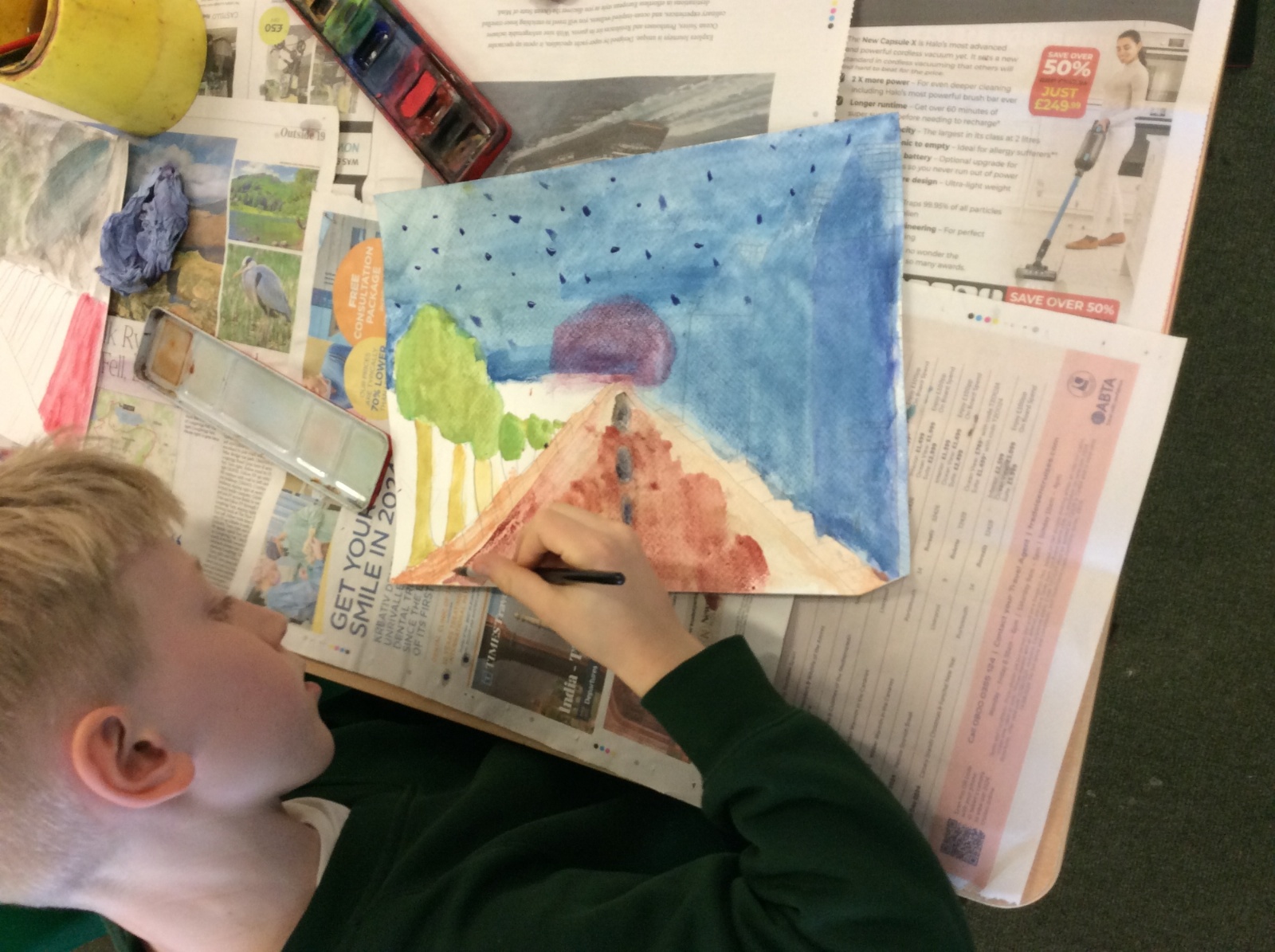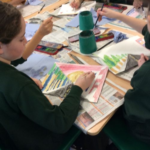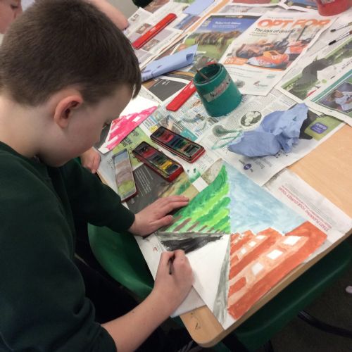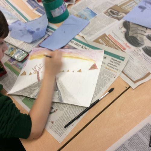 Year 5 have enjoyed creating their watercolour art pieces using one point perspective.