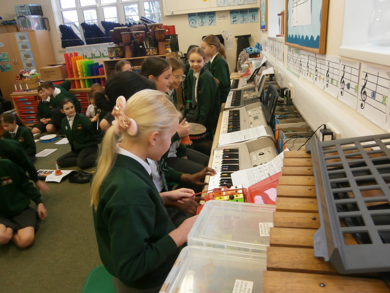 Linking in with our Shakespeare learning and trip to the globe, year 6 have been playing Tudor music. In groups, they had different people playing a melody, drone and ostinato.