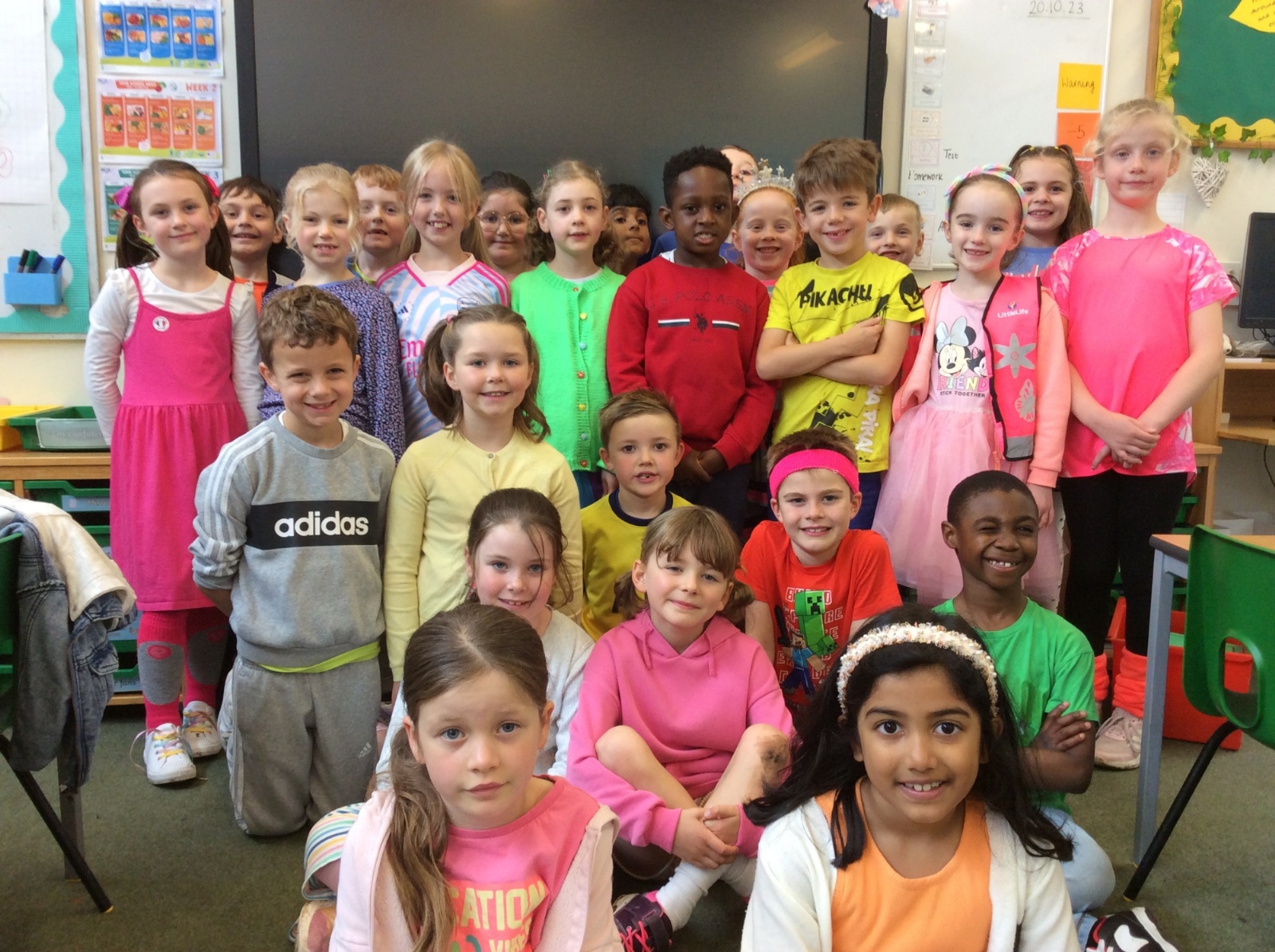 On Friday 20th October we came to school dressed in our brightest colours! Whilst this was a really enjoyable day, it carried a very important message. With the clocks due to go back at the end of October, it will get dark a lot earlier. Especially for children staying on for after school clubs, it will be important to consider whether they can be clearly seen whilst walking or cycling home from school. Well done to everyone, but especially those who thought about the need to wear reflective clothing that will be picked up by cars' headlights and make individuals even more visible.