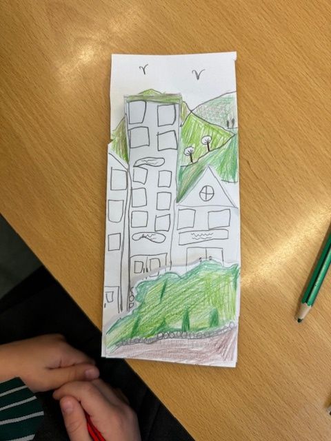 Year have kick-started their new topic with a lesson on background, middle-ground and foreground. To help them identify this within artists work, they used a piece of A4 paperfolded into thirds to create a quick cityscape. A very simple idea with great results!