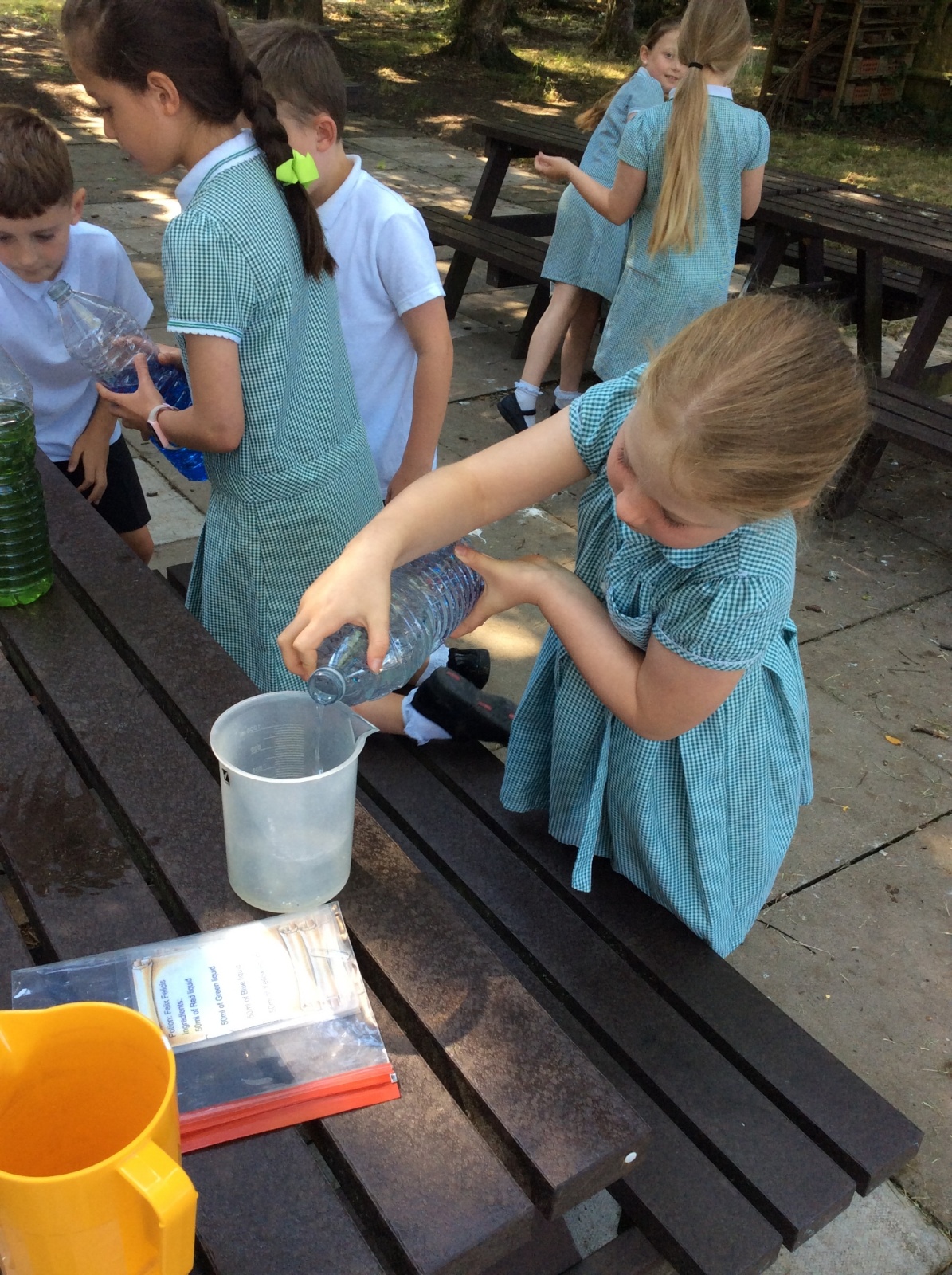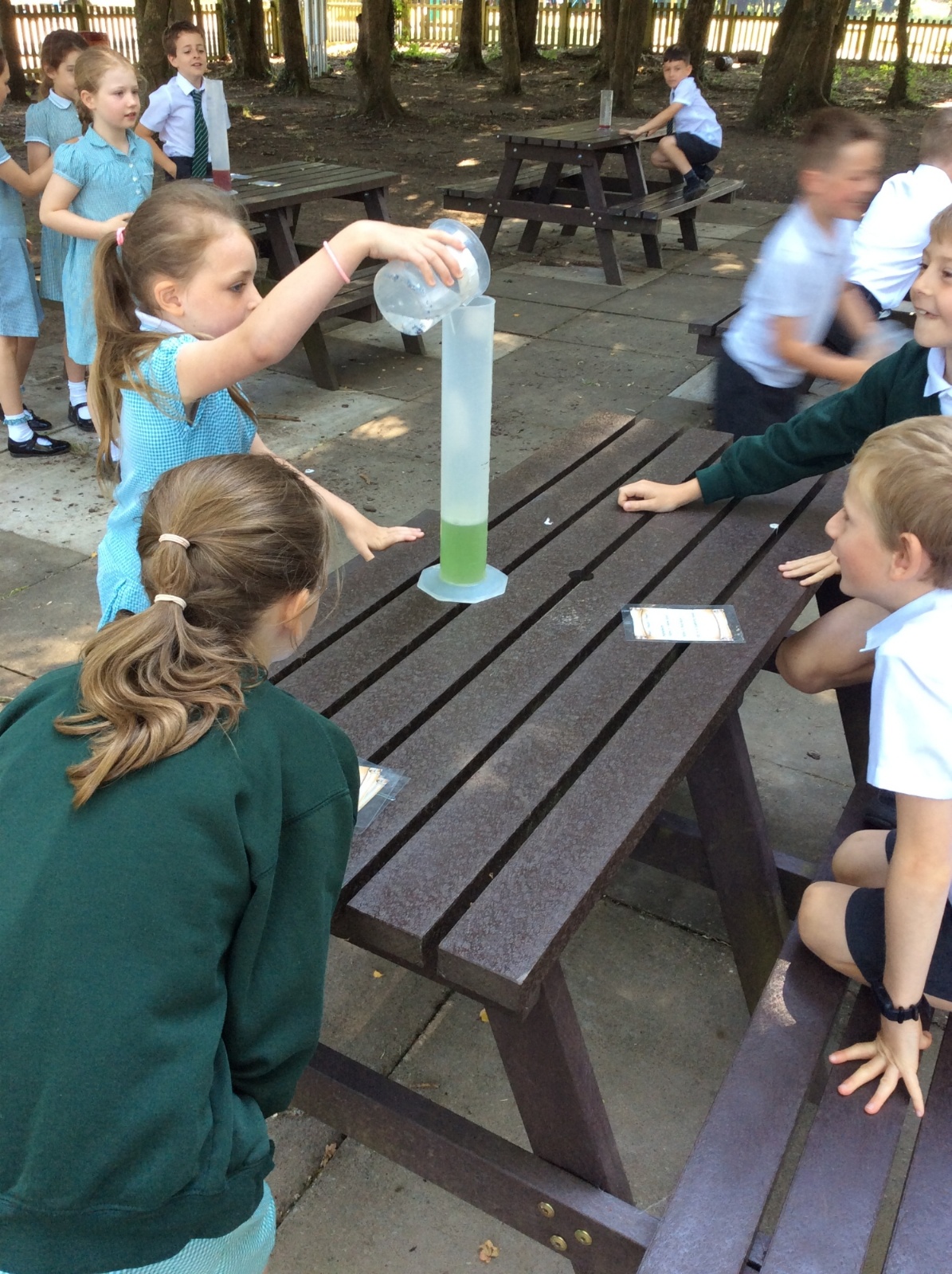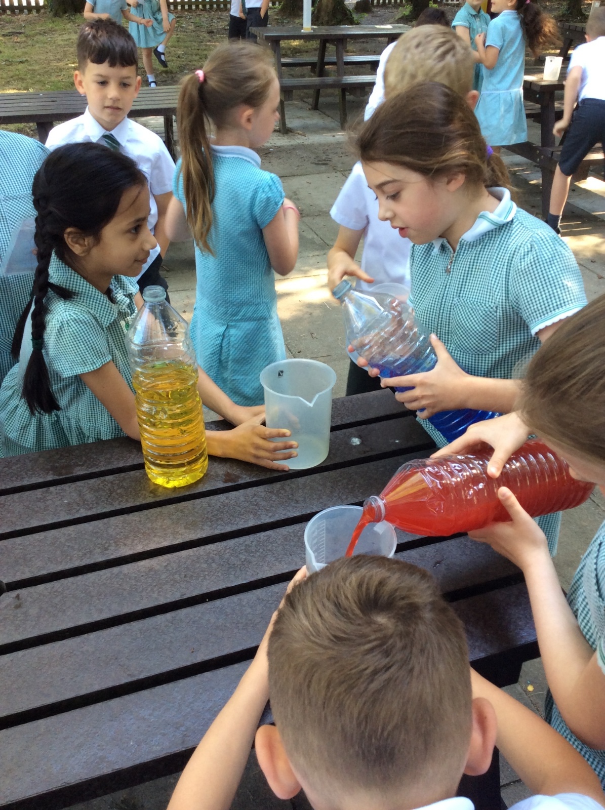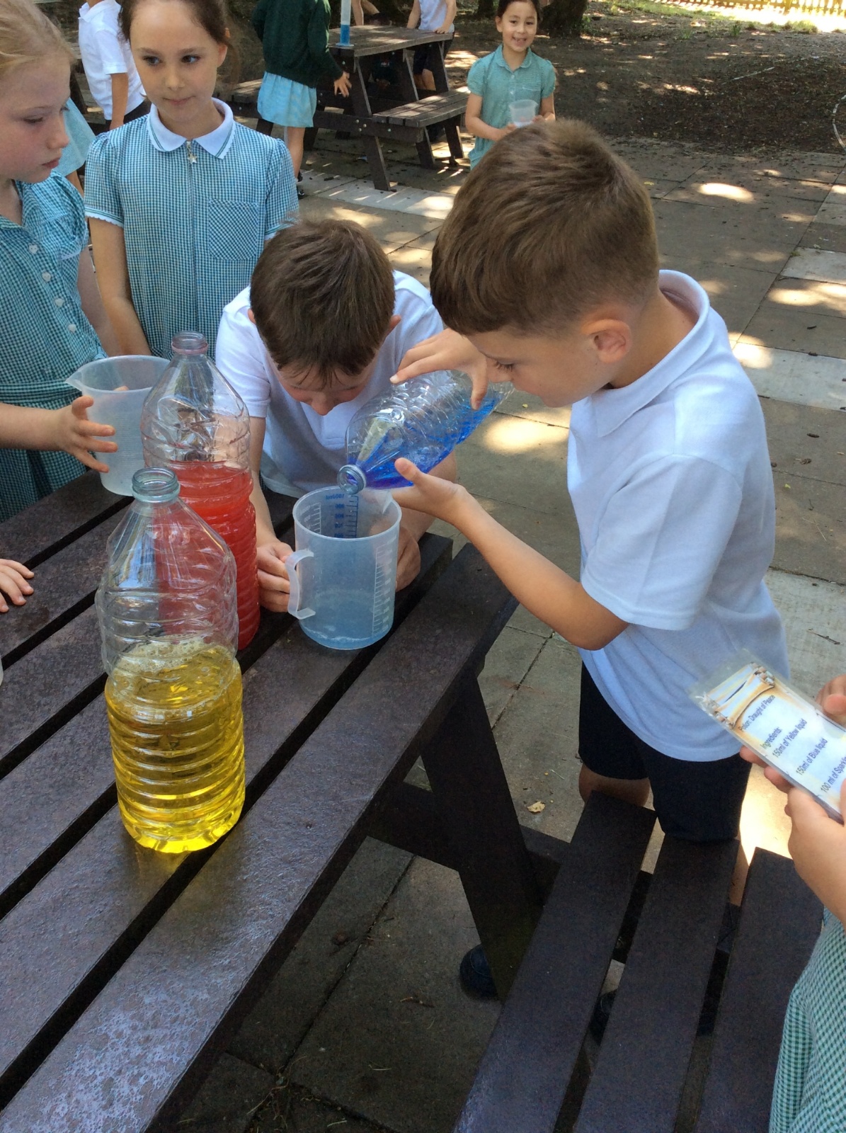 Year 3 spent some time outside creating potions to practise their measuring skills and to gain a greater understanding of volume and capacity.