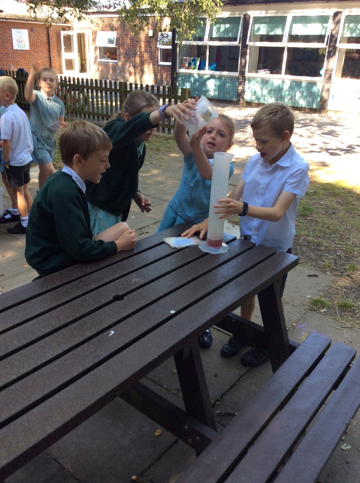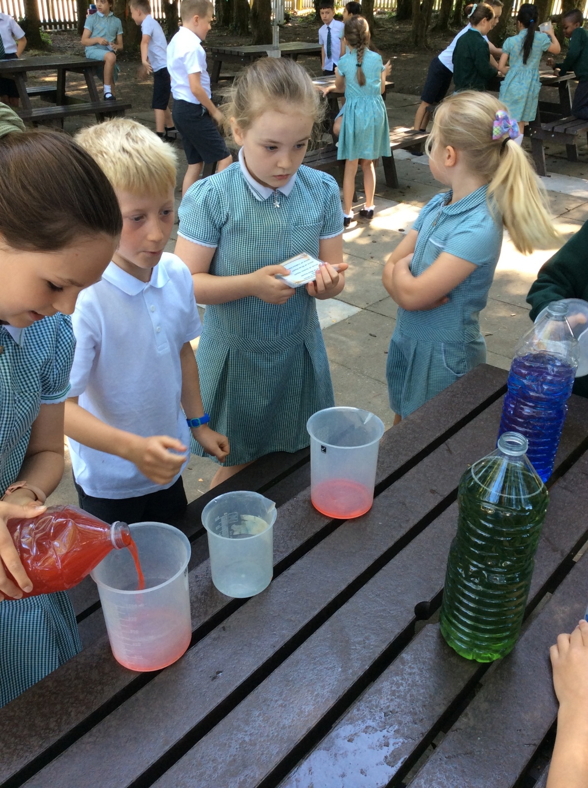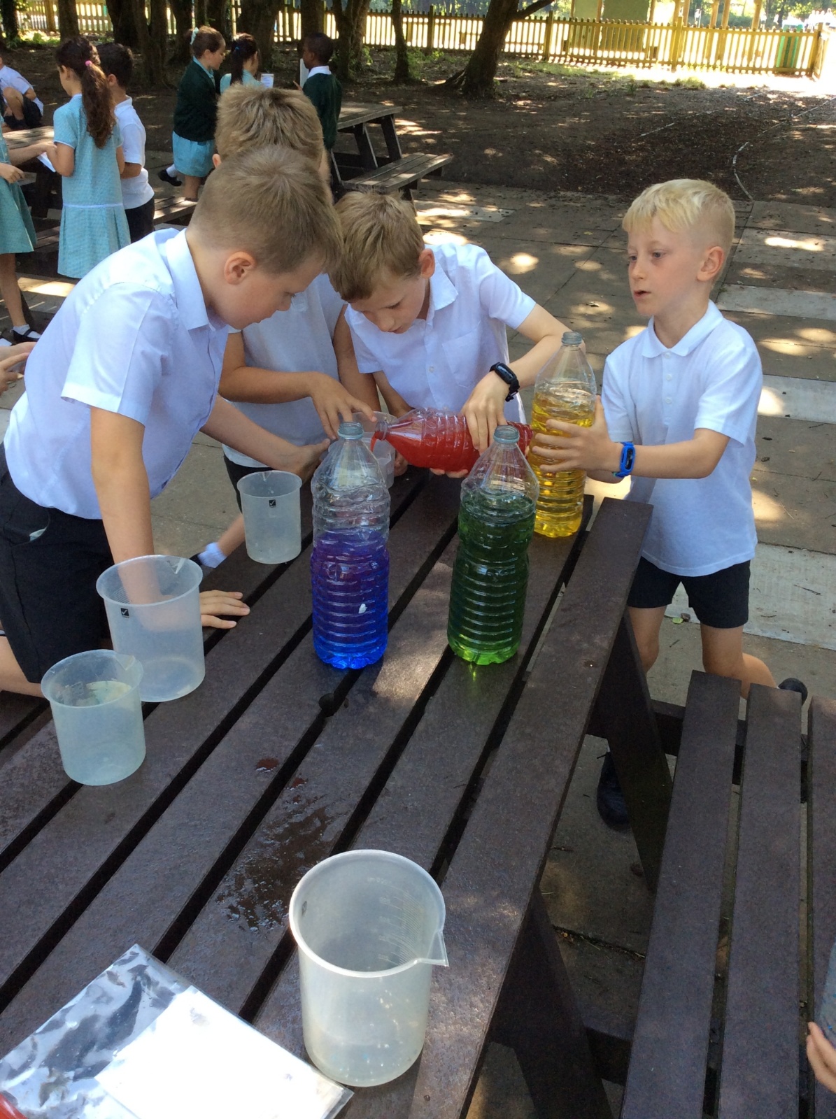 Year 3 spent some time outside creating potions to practise their measuring skills and to gain a greater understanding of volume and capacity.