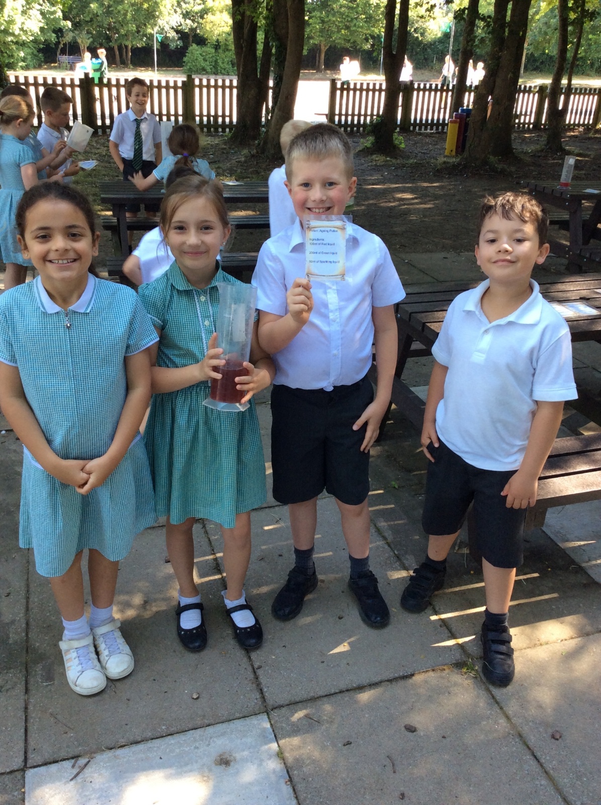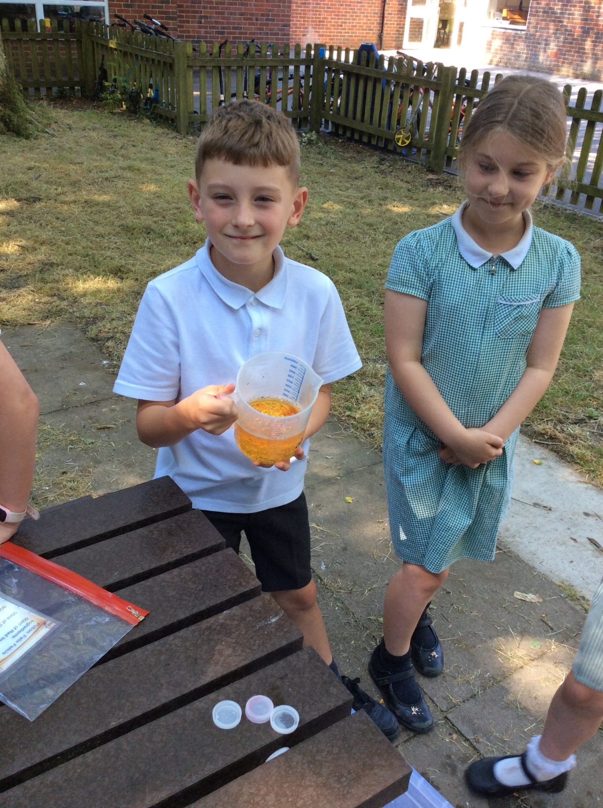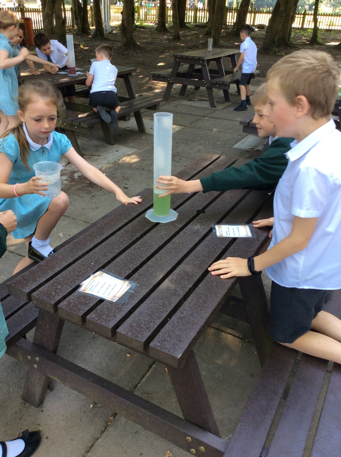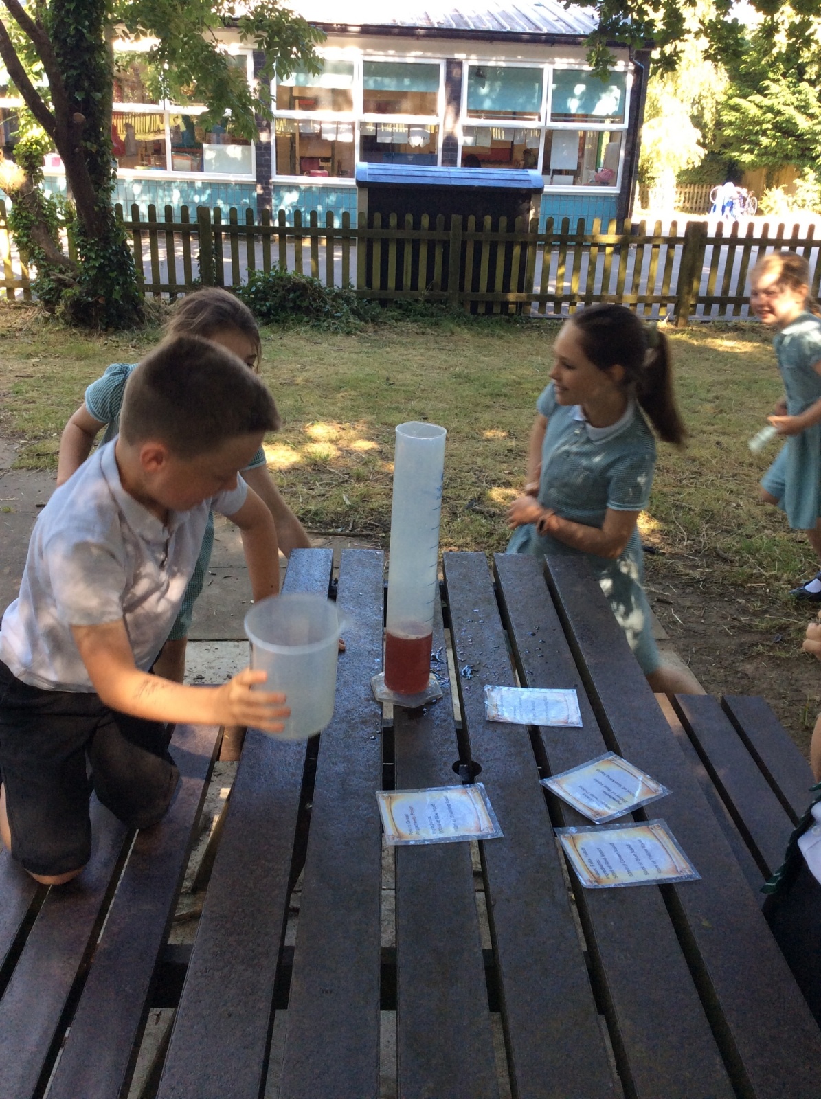 Year 3 spent some time outside creating potions to practise their measuring skills and to gain a greater understanding of volume and capacity.