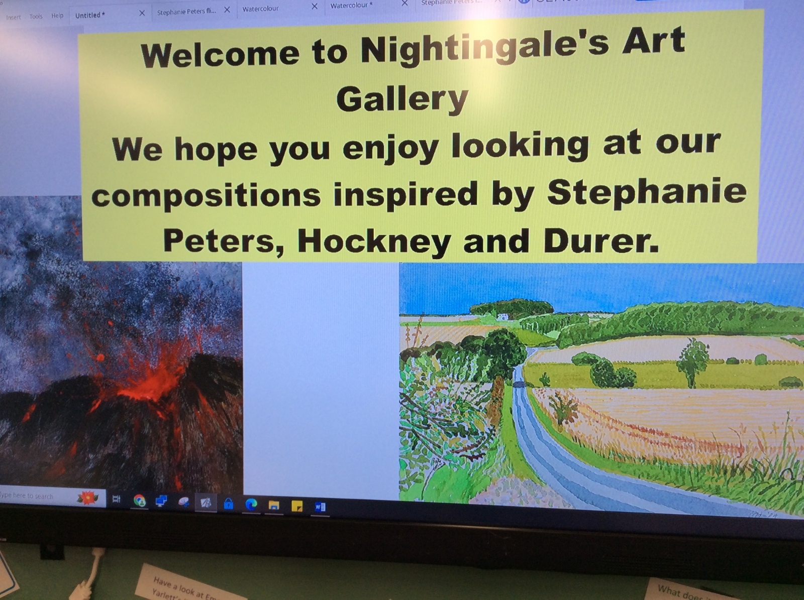 Nightingale Class were proud to share their art learning with their parents and carers this week. They created compositions inspired by Hockney, Durer and Stephanie Peters, using acrylic paint and watercolour.
