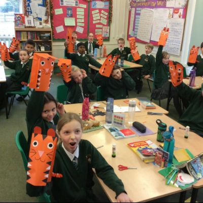 We were visited today by QMC students, who are working with the David Shepherd Wildlife Foundation. They came to talk to us about tiger conservation and how we can raise more awareness of these endangered species. We also made puppets as part of this session!