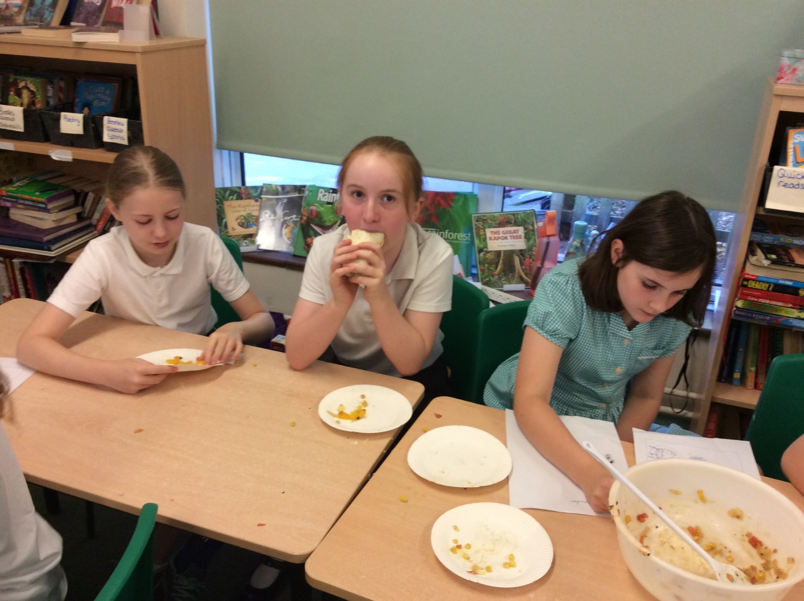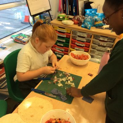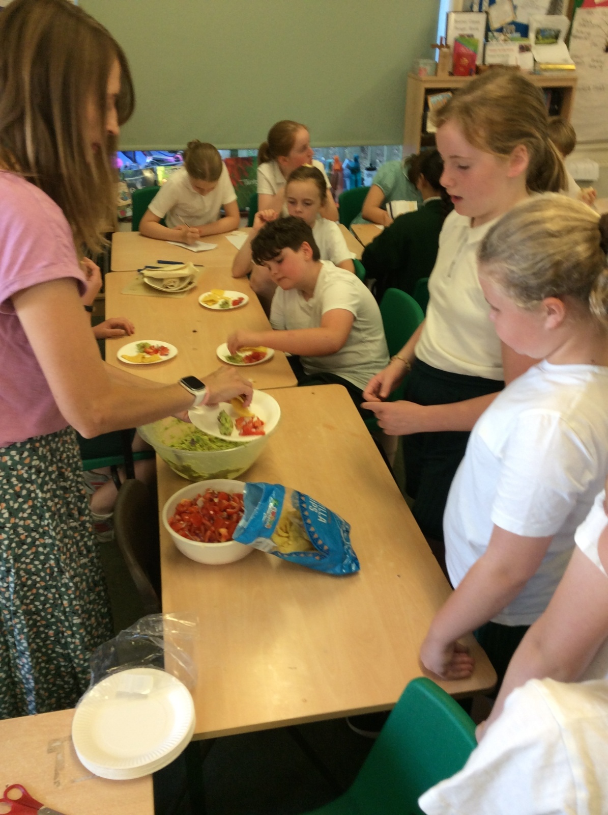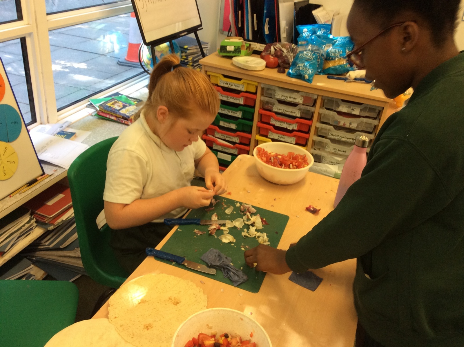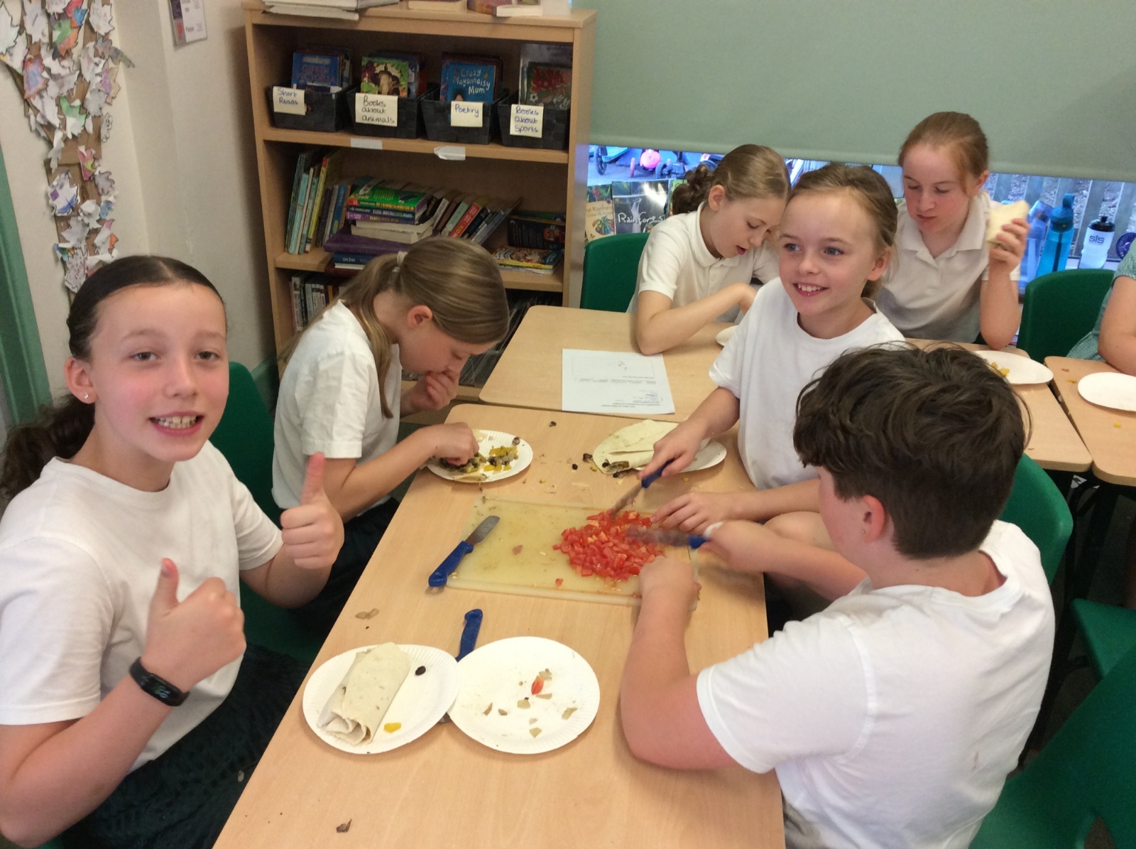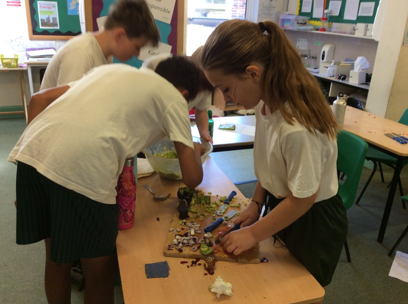 Year 5 had a tasty week this week, planning and cooking their own vegetable fajitas, guacamole and salsa as part of our look at Central and South America.  Many children were surprised to find out that vegetables they thought they disliked actually tasted great in a wrap!