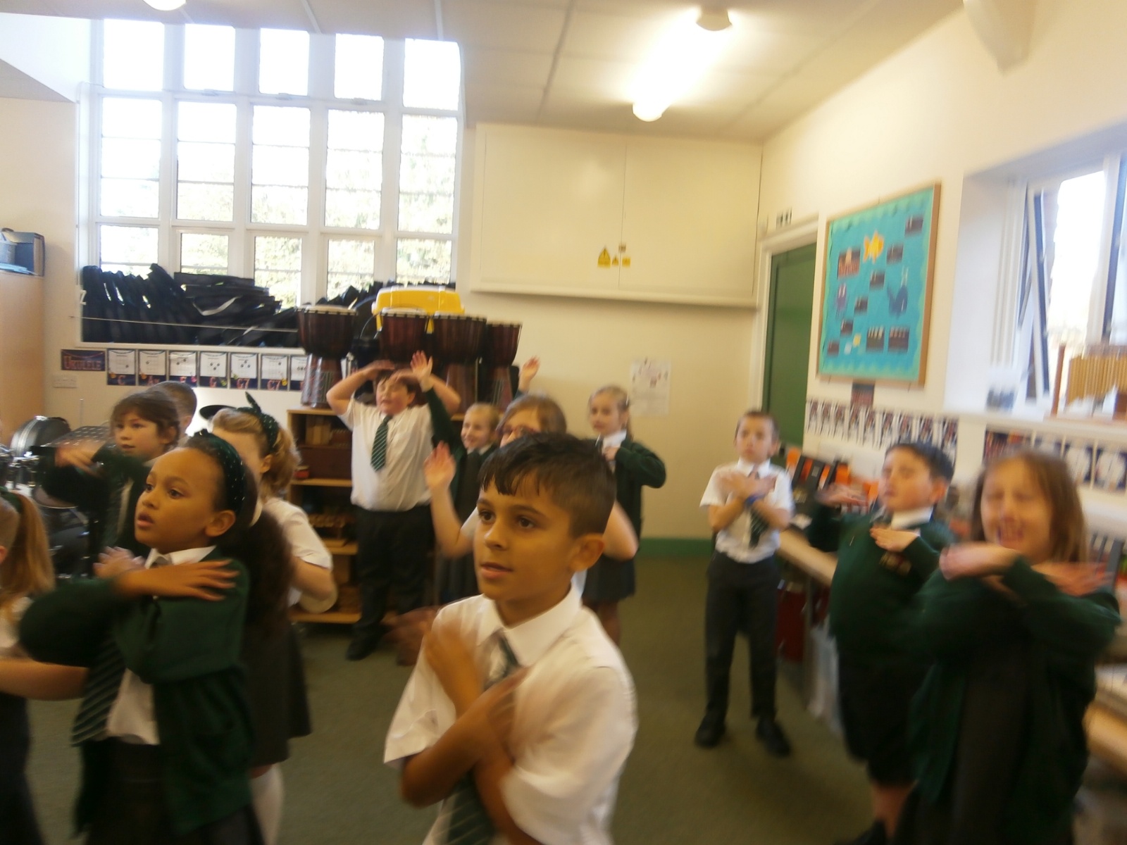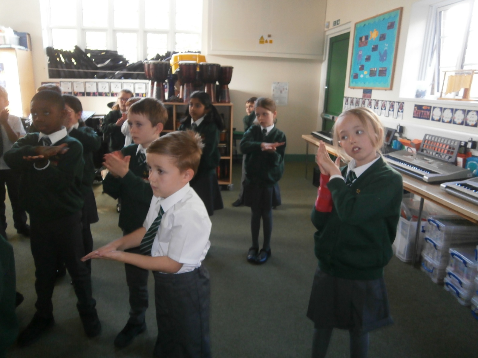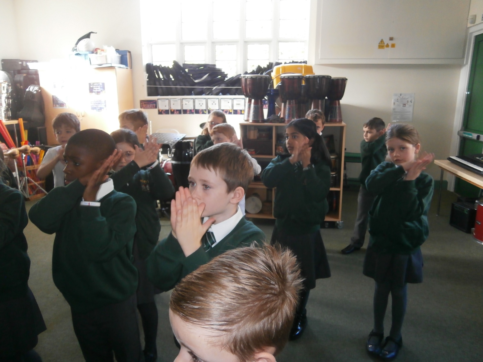 Year 3 were learning about body percussion sounds. We listened to Anna Meredith's Connect It piece and learned how to perform it.