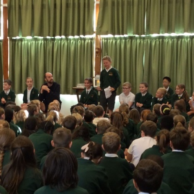 Year 5 and 6 School Councillors address the school.